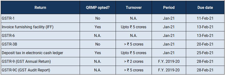 ECB 2 Returns for the month of January 2021 to be filed on or before 7 February 2021.