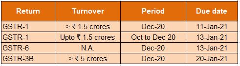 GST Return October- December 2020 – 31-January-2021