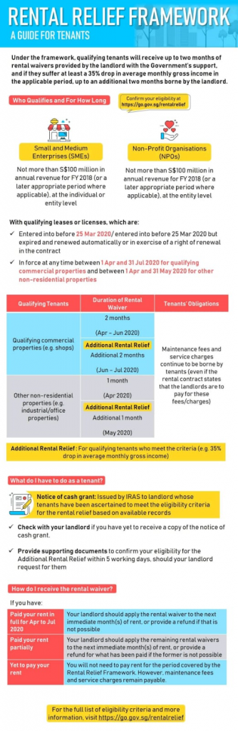 This rental relief framework under Part 2A of the Act and the COVID-19 (Temporary Measures) (Rental and Related Measures) Regulations 2020 (“Regulations”) provides for mandated equitable co-sharing of rental obligations between the Government, landlords and tenants. This aims to help affected SMEs that need more time and support to recover from the impact of the COVID-19 pandemic. In the long term, landlords stand to benefit from the recovery of SME tenants, as this will ensure the continued viability of the rental and property market. The framework will also cover eligible NPO tenants.