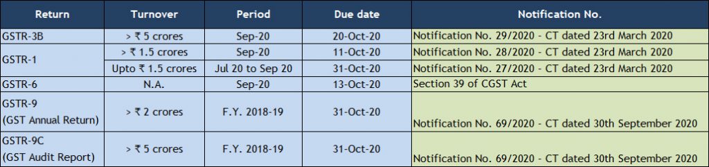 Much awaited extension is official now. Government has extended the due date for furnishing GST Annual Return and Audit Report for FY 2018-19 from 30.9.2020 to 31.10.2020.